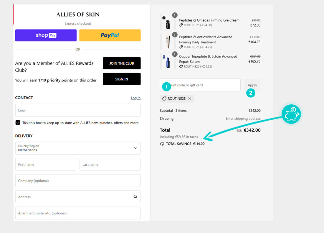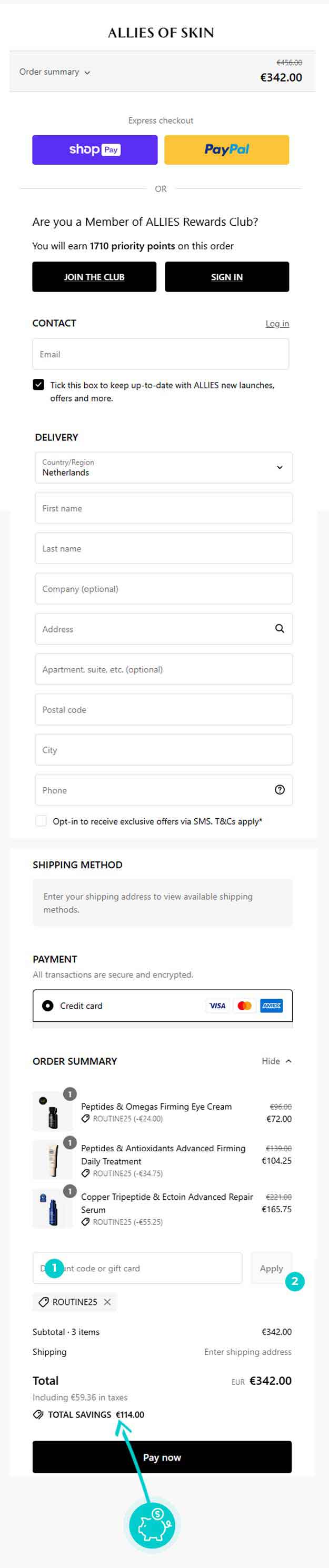 Soodustus - 25% kehtib e-poes Allies.shop kui lisate ostukorvi vähemalt kolm kampaaniatoodet ning rakendate sooduskoodi ostukorvis. Kasuta Allies of Skin sooduskoodi ning soeta kosmeetikatooteid soodsamalt.