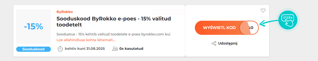 Soodustus - 10% kehtib esimesele ostule e-poes byrokko.com kui liitute uudiskirjaga ning rakendate e-mailile saadud sooduskoodi ostukorvis. Parimad sooduskoodid leiate lehelt Kuplio.ee