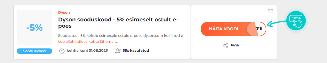 Tasuta tarne kehtib valitud toodetele e-poes dyson.com. Soodustus kehtib vastavalt e-poe poolt määratud tingimustele, millega saate lähemalt tutvuda poe veebilehel ja mis võivad aeg-ajalt muutuda.
