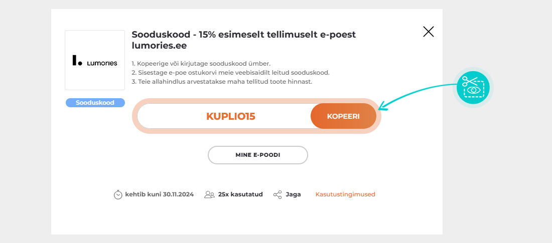 Ainult meiega Lumories sooduskood - 15€ valitud toodetelt